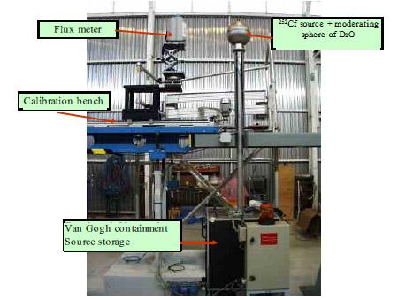 In addition to routine calibration activity, this irradiator is used to realign accredited laboratories with the national reference standards for neutron fluence and the derived dosimetric values (especially dose equivalents). Neutron flux values are determined directly from measurements of the neutron emission rate (number of neutrons emitted per second) of each source, performed in a manganese bath at the Laboratoire National Henri Becquerel (LNHB at CEA Saclay). The dosimetric values are derived from the fluence by applying the tabulated conversion coefficients given in the ISO 8529 standards [Ref.].